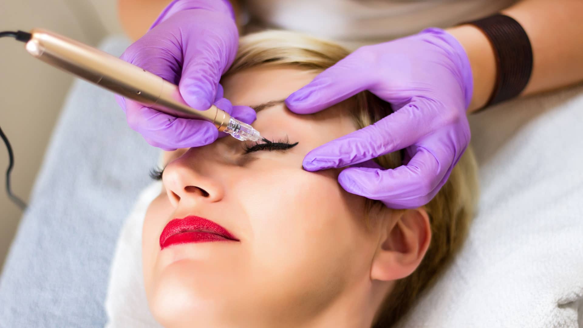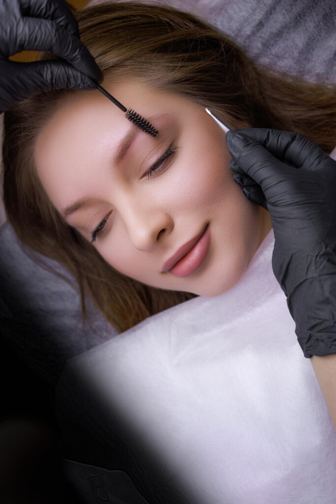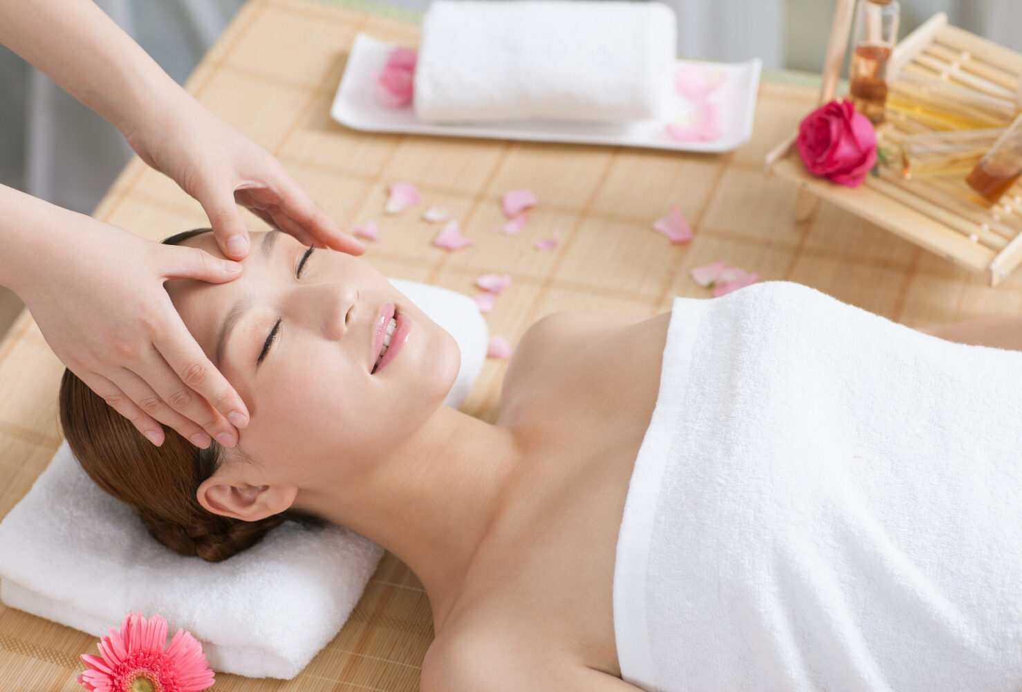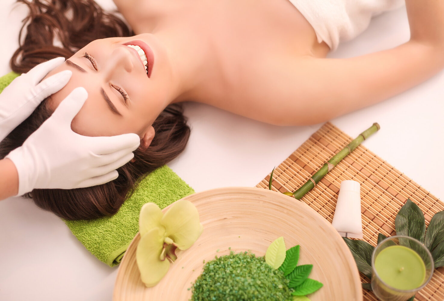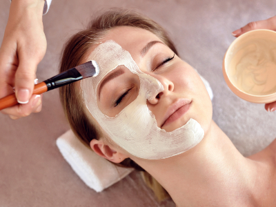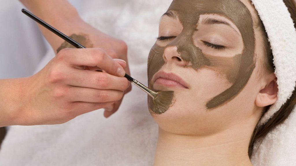 Face peeling mask, spa beauty treatment, skincare. Woman getting facial care by beautician at spa salon, close-up